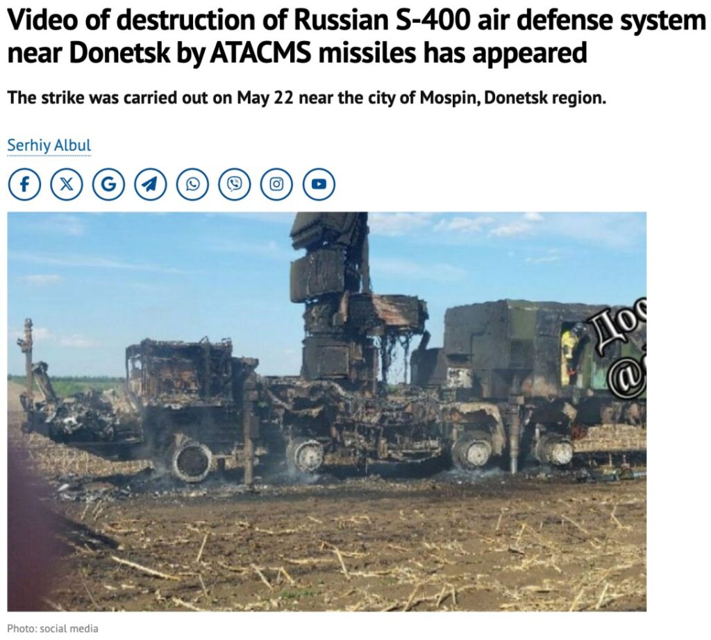 然而俄乌冲突证明,“防空防空,十防九空”,俄军自己的S-400系统整体表现也并不理想。乌克兰方面利用自杀无人机、美制陆军战术导弹(ATACMS)等远程打击武器,多次摧毁俄军S-400系统的导弹发射车、警戒雷达等。尤其是乌军的ATACMS导弹屡次立功,相关视频显示,2025年5月在顿涅茨克地区的拦截作战中,俄军S-400连续发射6枚导弹,依然被乌军的ATACMS摧毁。