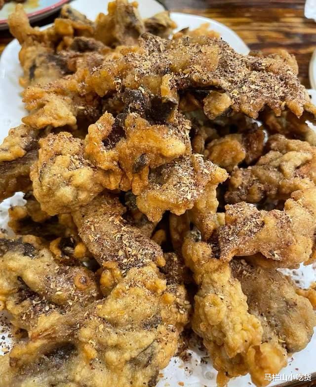 椒盐蘑菇, 外酥里嫩,裹粉轻薄不油腻,撒上椒盐香到舔手指,追剧小食既视感。