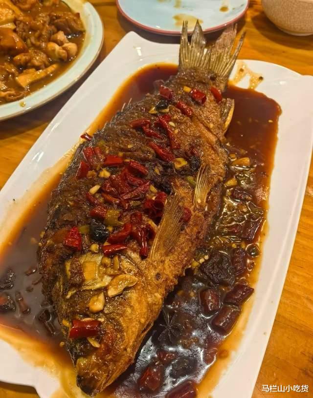 干烧鲤鱼,选用的黄河大鲤鱼,一整条,直接炸在焖煮,吃起来着咸鲜微辣、回味略甜的口感,辣而不燥,鲜而不腻 。