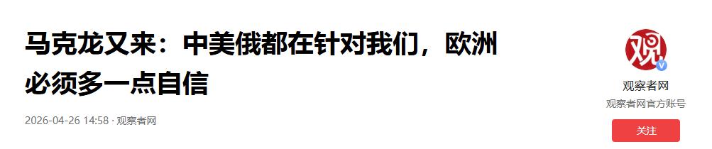 马克龙卸任前的警示,并非危言耸听,而是看清现实后的清醒认知。