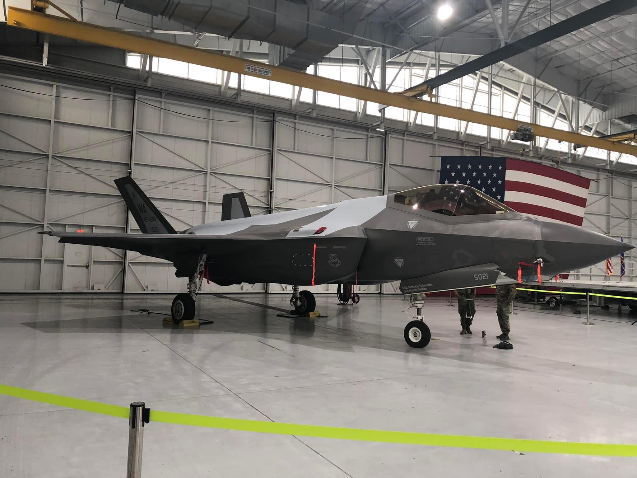 在第65“入侵者”中队重组仪式上,美国空军还展出了一架与歼-20非常相似的割裂迷彩涂装,与该中队过去主要模仿俄系战机的涂装风格完全不同。
