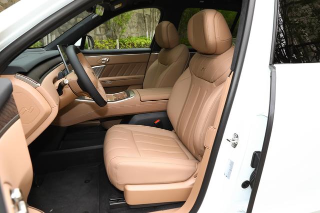 坐进车内,棕米双色Nappa真皮座椅触感细腻亲肤,搭配温润的真木饰板点缀,整体色调温馨且耐脏,日常打理起来毫不费力。中控台和车门板处均采用皮质包裹,触感柔软细腻,拼接处的缝隙均匀规整,从细节做工中能看出旗舰车型的扎实水准。车内核心操控区域由嵌入式全液晶仪表与17.2英寸3K悬浮式中控屏组成,搭载Coconut 2.0车机系统,操作流畅度堪比旗舰手机,滑动、点击几乎没有卡顿感,上手简单易懂,家里老人也能轻松操作。