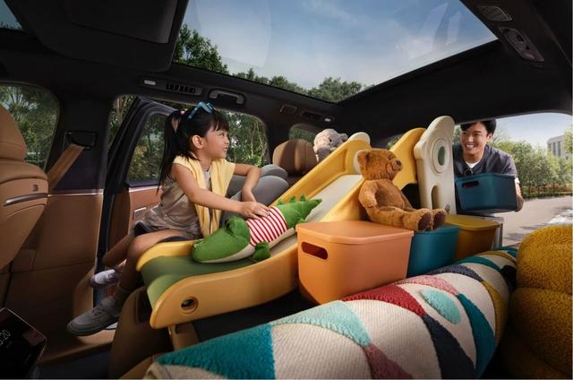 储物空间的实用性更是拉满,乐道L90的后备箱在六座满员状态下容积为430L,能轻松容纳3-4个登机箱和全家出游的背包,满足春游储物需求;第三排支持50:50比例电动放倒,放倒后容积可拓展至1214L,空间规整且进深充足,不管是搬家、拉露营装备,还是放置婴儿车、家电等大件物品,都能轻松应对,很好适配家庭各种储物场景。