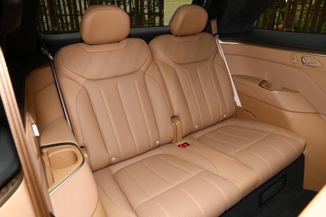 更让人惊喜的是第三排的空间表现,很多六座SUV的第三排都只能应急使用,但乐道L90的第三排,即便我180cm的身高坐进去,腿部和头部也有充足的活动空间,膝盖离第二排座椅仍有一拳距离,日常乘坐成年人完全没有问题。第三排座椅填充物同样厚实,靠背角度舒适,还配备了独立杯架和充电口,没有因为是第三排就忽视细节,让每一位乘客都能感受到被重视。