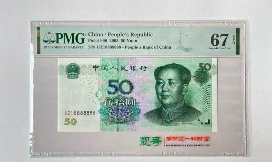2005版50元作为流通多年的主流币种,普通版本毫无溢价,特殊靓号却是另一番景象。这类纸币的收藏价格,受存世量、品相、冠号与流水号共同影响,品相越完美、号码越特殊,价格就越高。