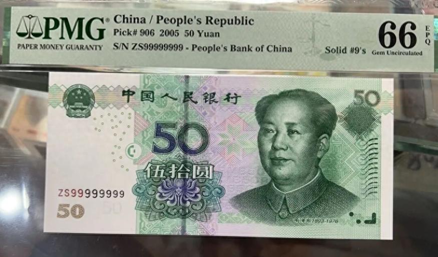 还有一种全同号珍品,冠号ZS99999999的05版50元,八枚数字全部为9,经过专业评级机构评定为高分全新品相,纸张品质完好无瑕疵。这种全同号出现概率极低,是靓号收藏里的硬通货,市场认可度很高,价值远超普通特殊号码。