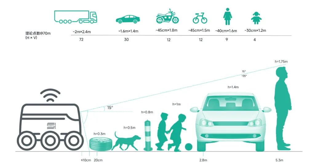 线数指垂直方向上的激光发射通道数量,每一线对应一束独立激光,线数越多,垂直方向扫描越密集,3D点云越清晰,可更精准识别行人、车辆、障碍物等细节。线数越高,点云成像能力越强。