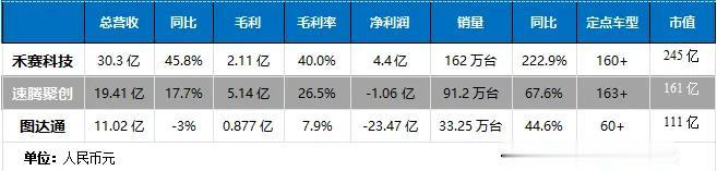 此外在毛利率、总销量上禾赛科技也大幅领先对手。