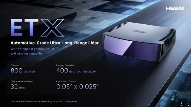 而在2025慕尼黑车展,禾赛科技推出了车规级800线超远距激光雷达ETX。
