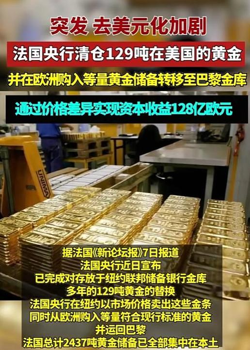 法国率先行动,将存放在美国的黄金全部清空撤回,释放出强烈信号。