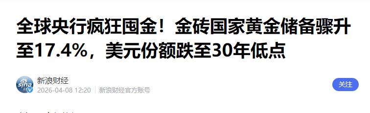 在美元信用持续透支的今天,黄金正在从储备资产的“配角”重回“主角”位置。
