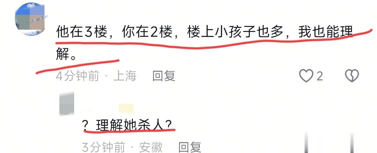 但是还有人对柳某某的杀 人行为表示理解。说楼上小孩太多,导致柳某某做出不理智的行为。