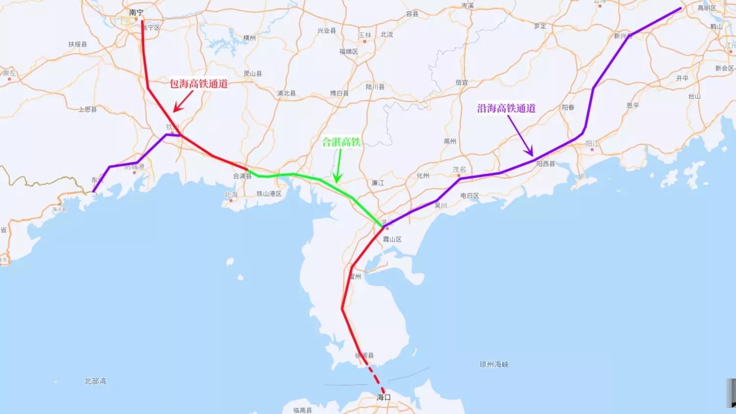 合湛高铁是包海通道和沿海通道组成部分