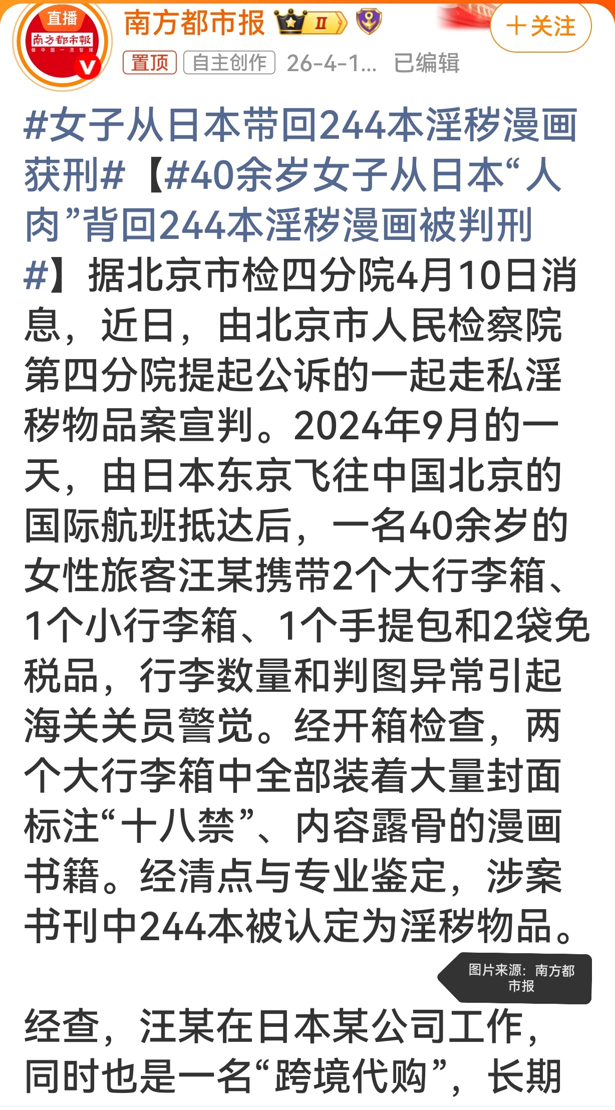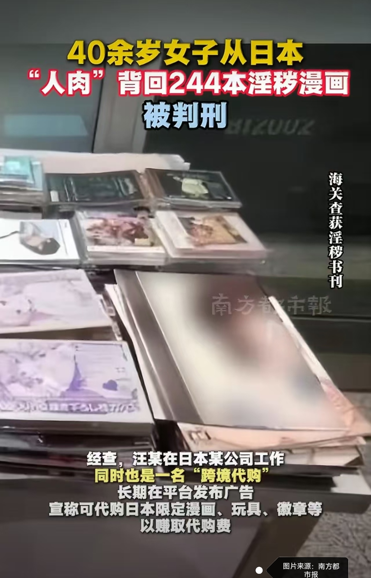 #女子从日本带回244本淫秽漫画获刑# #走私淫秽物品严惩不贷# #跨境代购需守法#