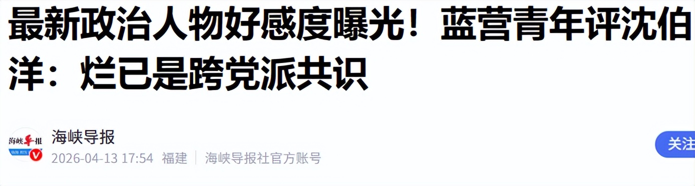 1.2026-04-13《最新政治人物好感度曝光!蓝营青年评沈伯洋:烂已是跨党派共识》-海峡导报
