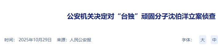 3.2025-10-29《公安机关决定对“台独”顽固分子沈伯洋立案侦查》-人民公安报