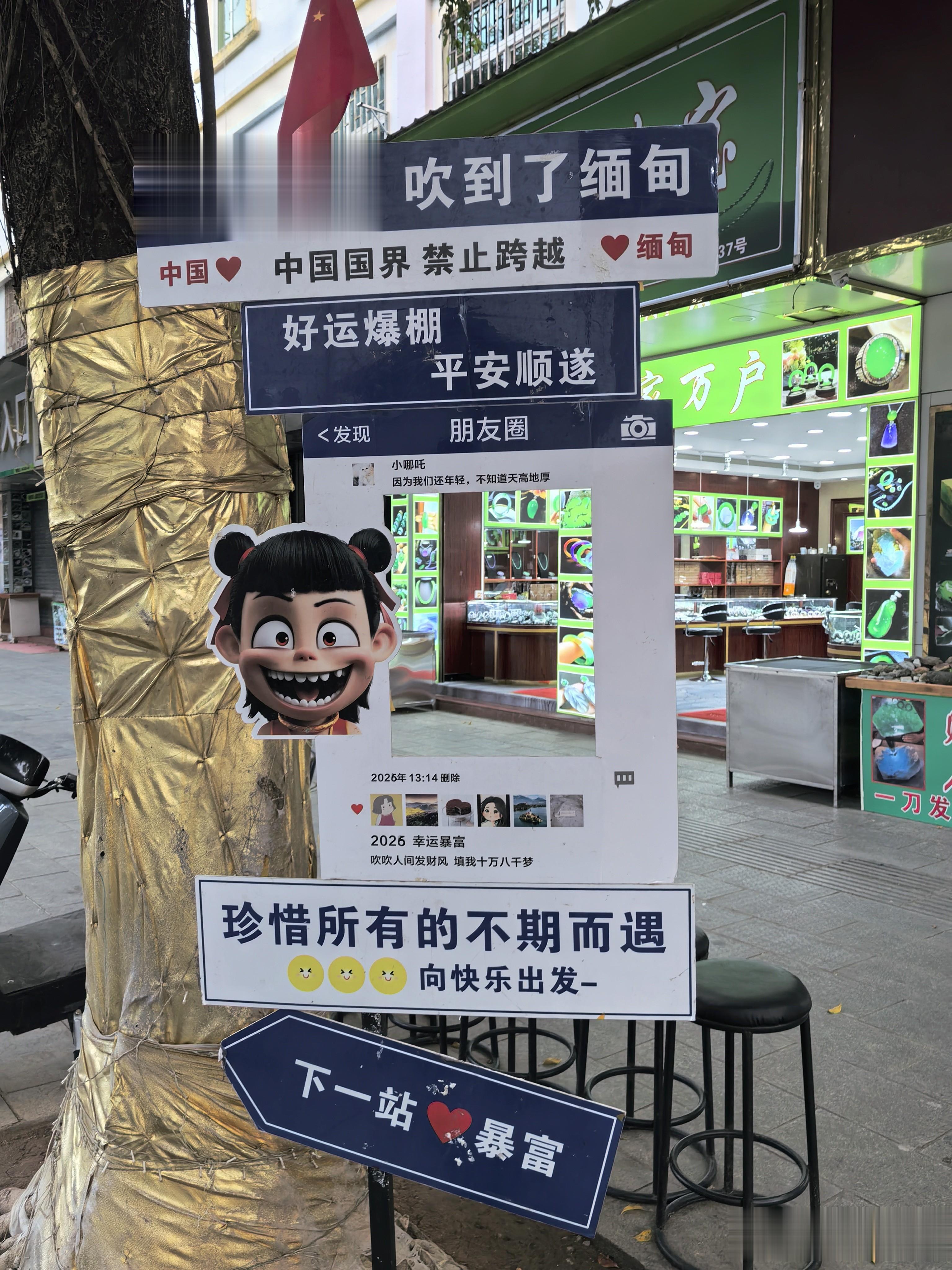 园区里商业氛围是真的浓,商铺一家挨着一家。卖缅甸特产的最多——缅甸玉、翡翠、原石,柜台里摆得琳琅满目。还有各种缅甸香皂、缅甸货币当纪念品卖,花花绿绿的缅币,买几张回去送人挺有纪念意义。