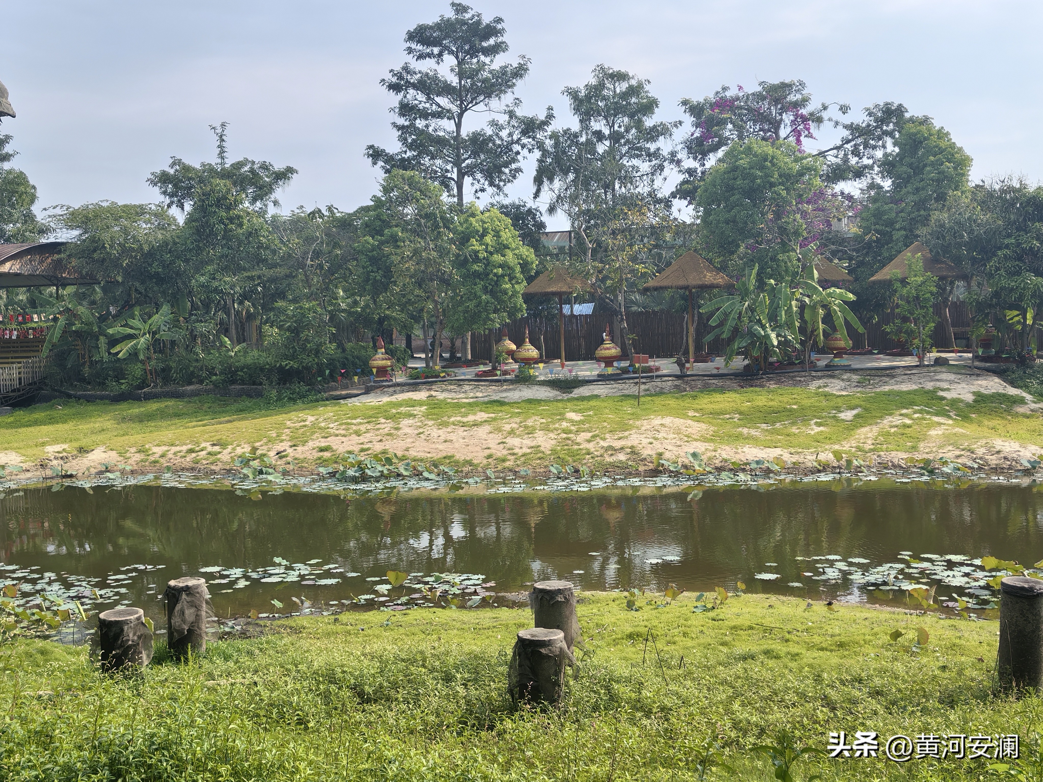 景区里头有一段栅栏,隔开了中国和缅甸。栅栏不高,透过缝隙能清楚看见对面缅甸村寨的景象——低矮的茅草屋、晾晒的衣服、跑来跑去的鸡鸭。
