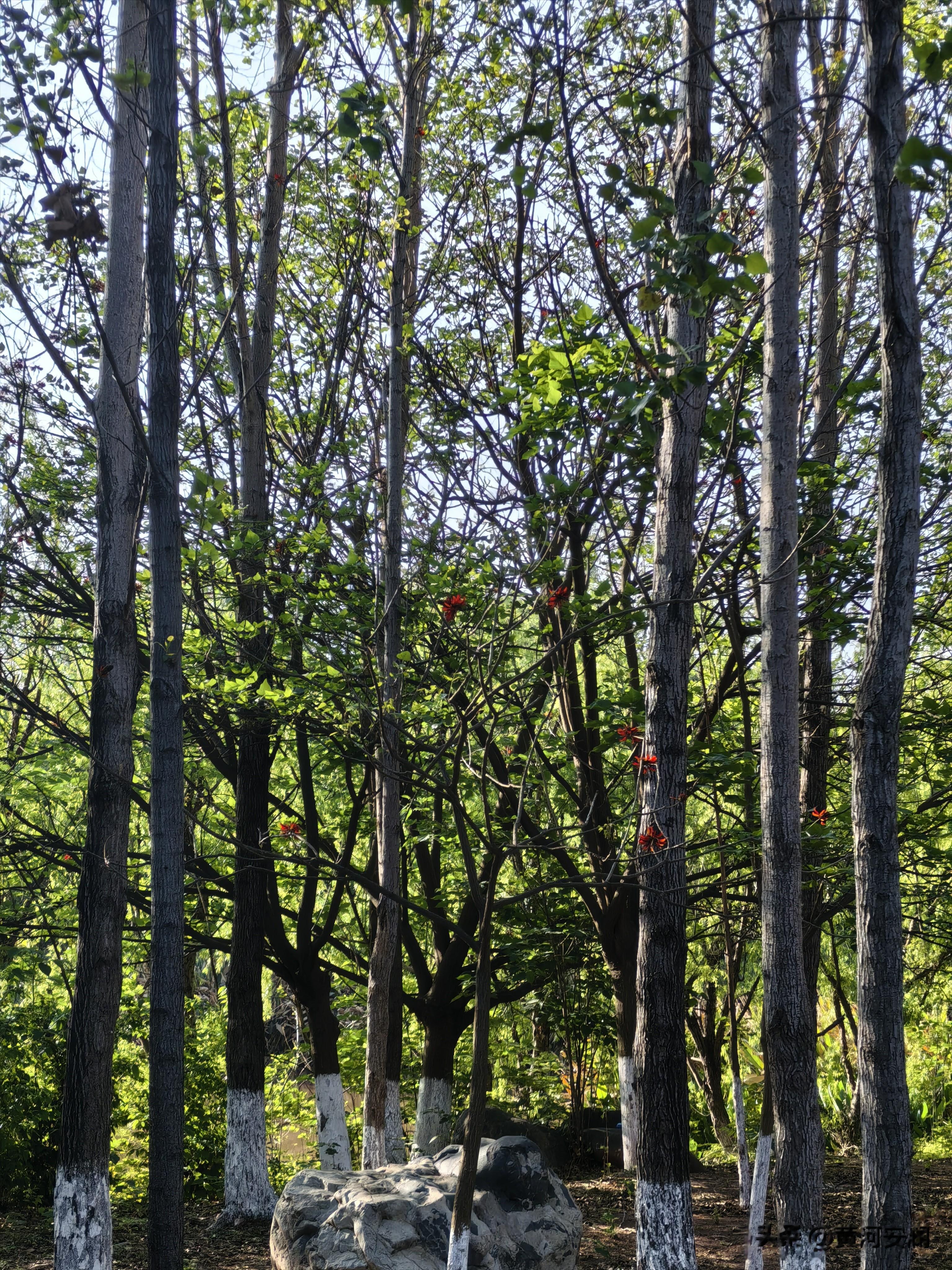 公园里最打动我的,是那些蜿蜒的木质栈道。它们像一条条丝带,飘在水面上、钻进树林里、绕过一片片芦苇荡。走上去"咚咚"响,特别有感觉。