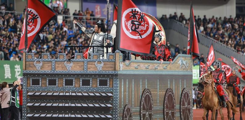 他紧握长戟高声喊出“吾乃西楚霸王,宿迁子弟何在”,全场观众齐声回应,声浪震天,不少宿迁观众热泪盈眶。