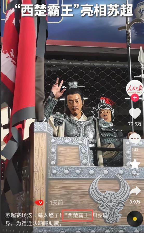 霸王归乡:披甲赴约苏超,一声呐喊燃爆全场何润东的翻红,还促成了一场“霸王归乡”。项羽故里在江苏宿迁,2026年苏超联赛成为江苏各城市文旅出圈的重要舞台。
