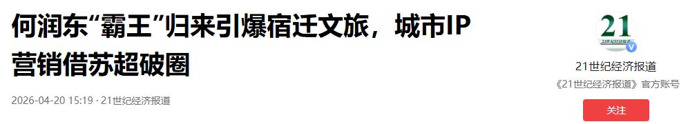 21世纪经济报道:何润东“霸王”归来引爆宿迁文旅,城市IP营销借苏超破圈