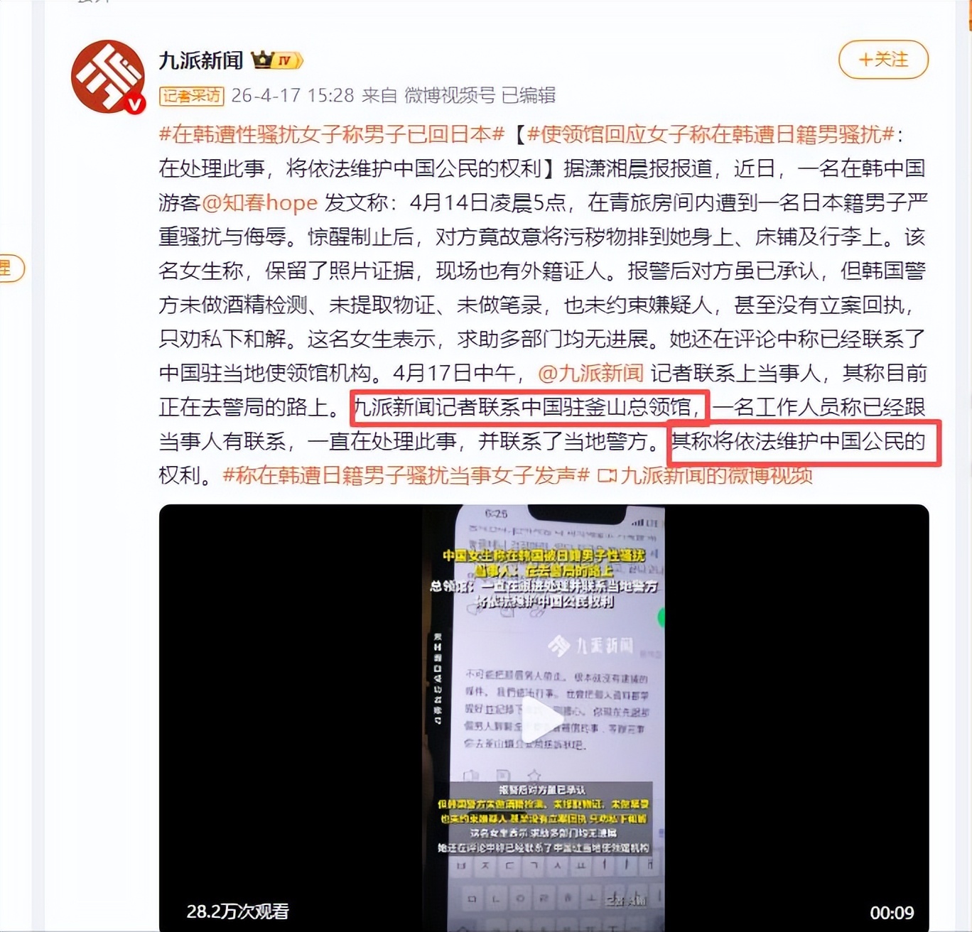 令她意外的是,领馆工作人员案发当天就接到求助,立即启动领事保护程序,全程跟进案件,主动联系釜山警察厅及负责署,反复督促韩方依法公正快速处理,明确要求维护中国公民合法权益。