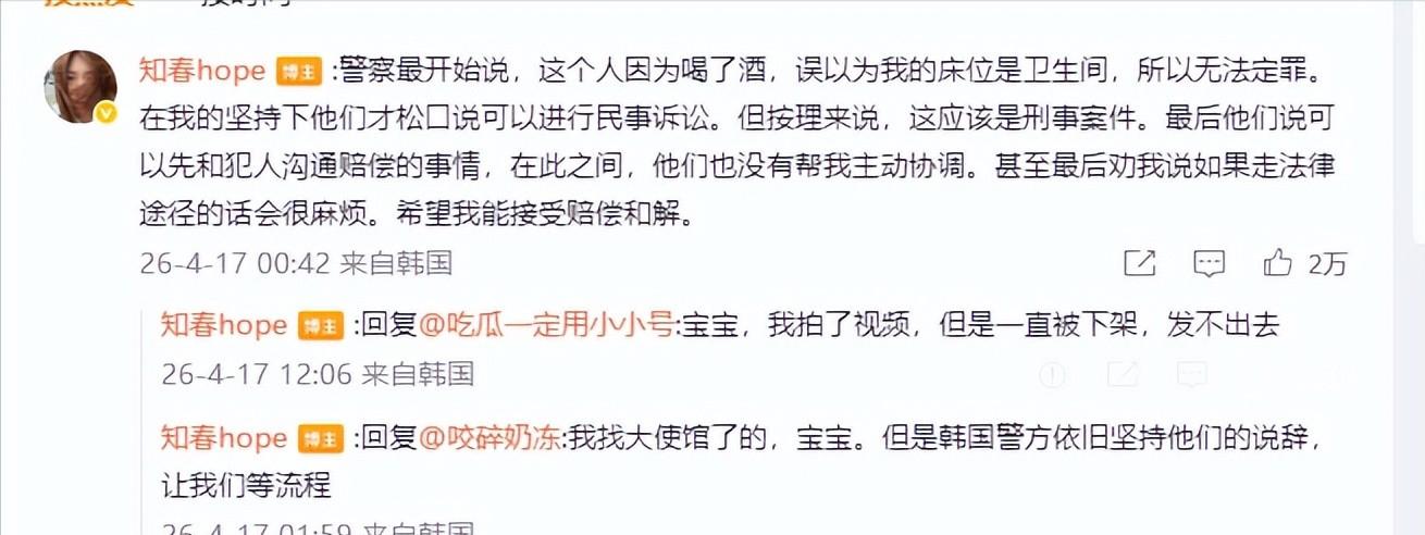张女士原本计划回国准备毕业答辩和春招,如今只能被迫滞留韩国,承受着身心双重创伤,艰难寻求公道。
