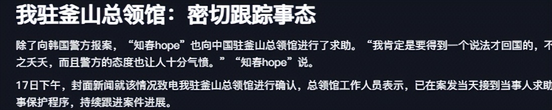 唯一的温暖与底气在异国的孤立无援与警方的冷漠敷衍中,张女士一度绝望,而中国驻釜山总领馆的介入,成为她在异国他乡的底气。