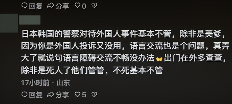 更令人无法接受的是,警方出警当天,该男子就离开青旅并顺利返回日本。面对张女士的问询,韩国警方竟表示“只能等他下次入境才能处罚”,这简直是太荒谬了。