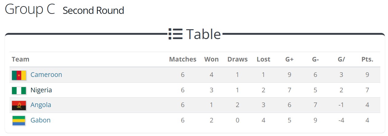 当时的赛制的积分规则是:胜一场积两分、平一场积一分。第一轮比赛,主场作战的尼日利亚队1:0战胜加蓬队,而喀麦隆队却在主场被安哥拉队爆冷逼平。第二轮比赛,客场作战的尼日利亚队被安哥拉队逼平,从而被客场取胜的喀麦隆队迎头赶上。第三轮比赛,回到主场、与小组主要竞争对手喀麦隆队的生死战中,尼日利亚队2:0取胜,抢得了小组出线的主动权。但在第四轮比赛中,不善客场作战的尼日利亚队客场1:2被加蓬队击败,出线形势又变得岌岌可危。