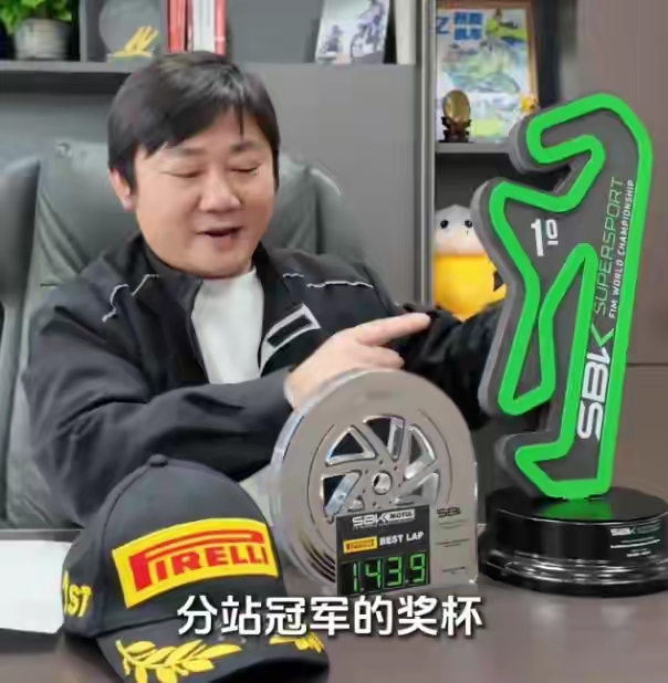 张雪还说赛车40万有点太寒酸,所以要加码。“奖杯是不可复制的,连同赛车一起赠送。还有冠军的帽子,我签了名。”