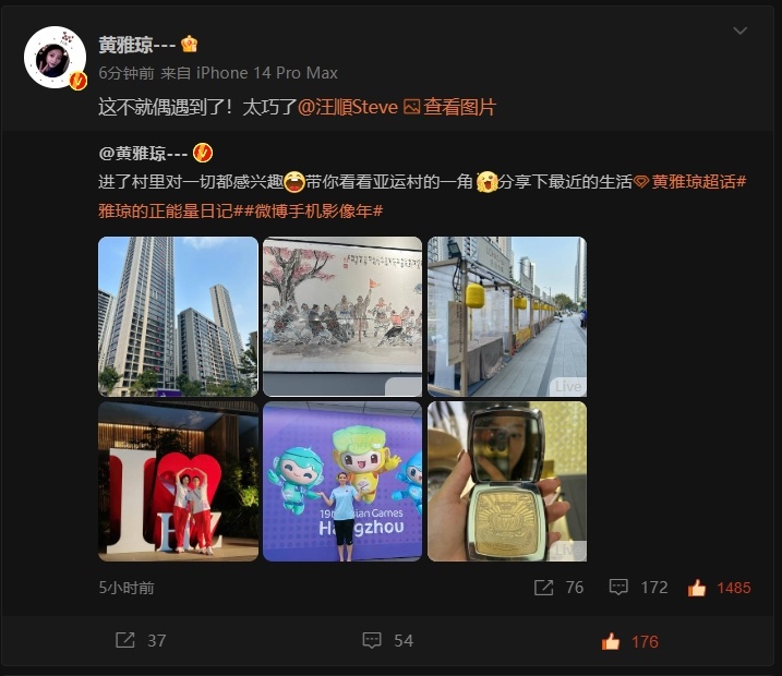 #偶遇汪顺这么容易么# 晚间发博晒出抵达亚运村首日的plog,早已入村的评论:啥时候偶遇一下[doge]