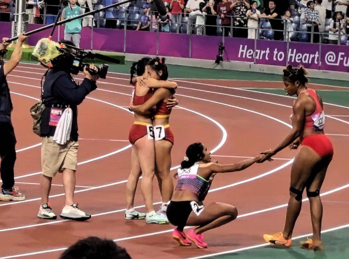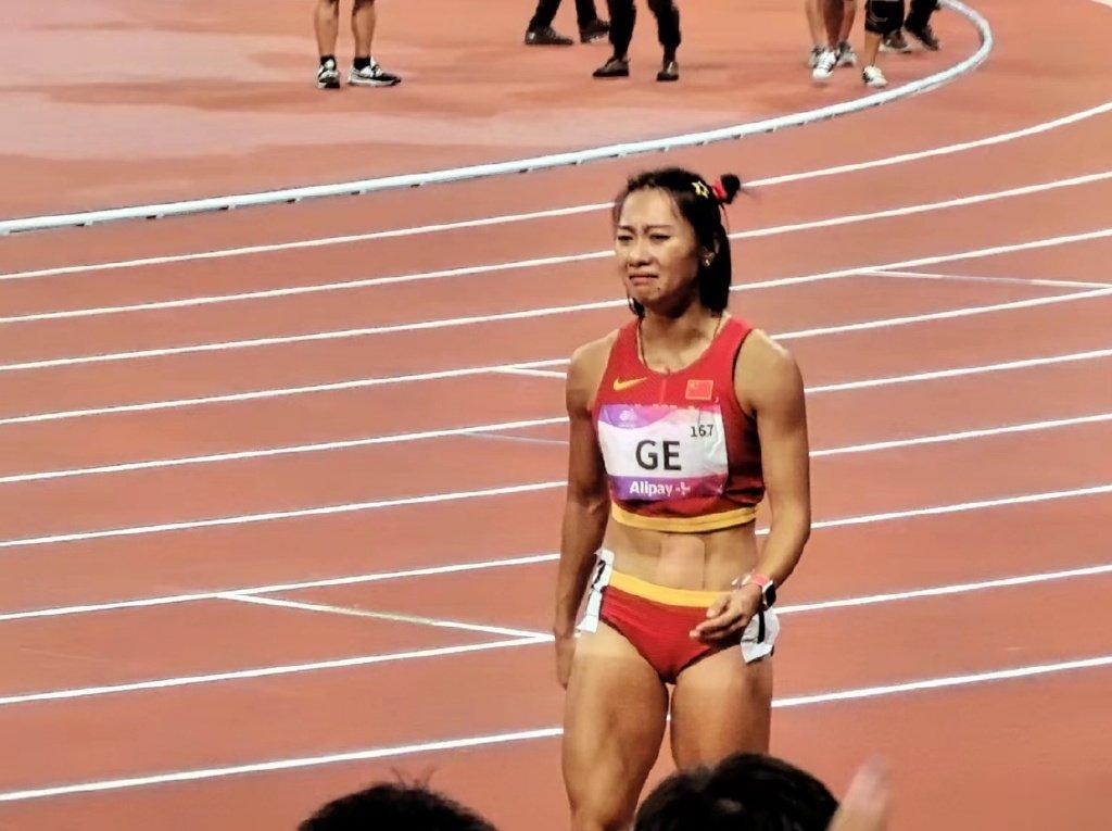 夺得杭州亚运会女子百米金牌后,与韦永丽拥抱落泪,顶住压力拿下这块金牌,不容易!#