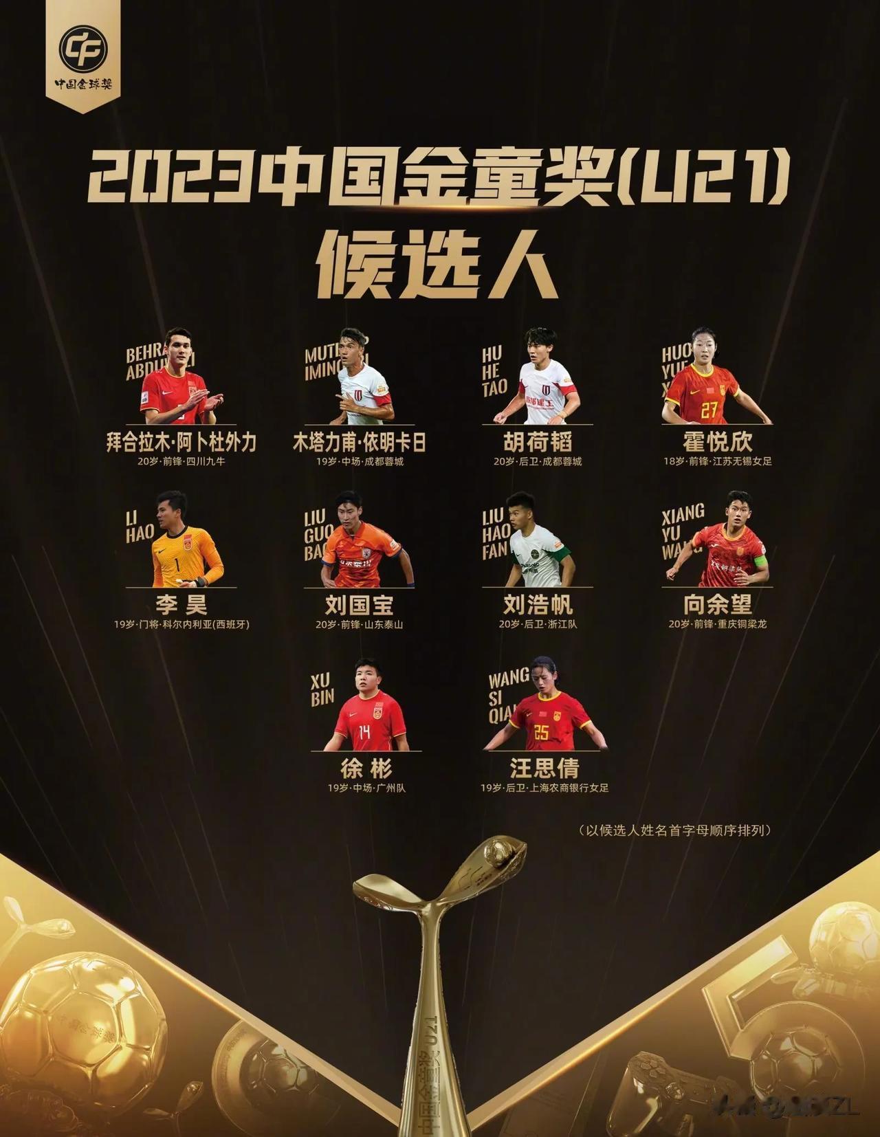 中国足坛奖项评选结果大概率结果: 中国金帅奖:吴金贵,足协杯夺冠,联赛第五。 中国金球奖:武磊,中超冠军得主,本土最佳射手。 中国金童奖:拜合拉木,5球1助,助力四川九牛中甲夺冠并成功冲超。