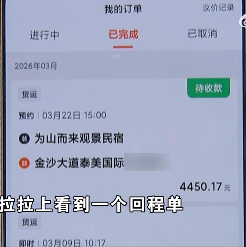 二、一个看似完美的顺路订单3月16日傍晚,薛先生在丽江古城附近的一个停车场里,打开货拉拉司机端刷单。他打算接一单回浙江方向的,哪怕只到昆明或者贵阳,也能省下几百块油钱。