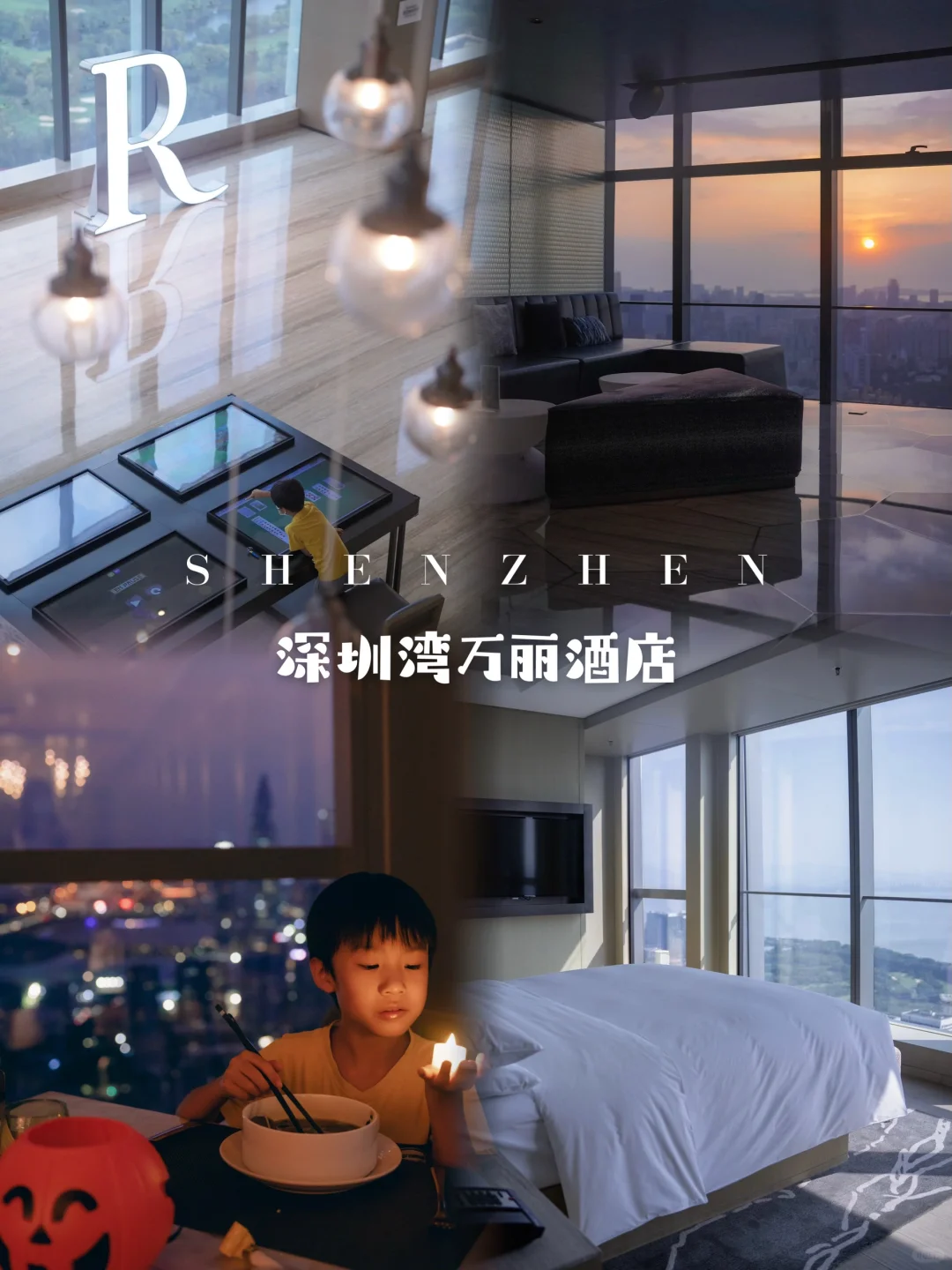 同样在高空远眺深圳湾,海景和日出日落都值得期待,自助美食让人垂延欲滴,房间270度景视野开阔,华灯初上的夜景绝美