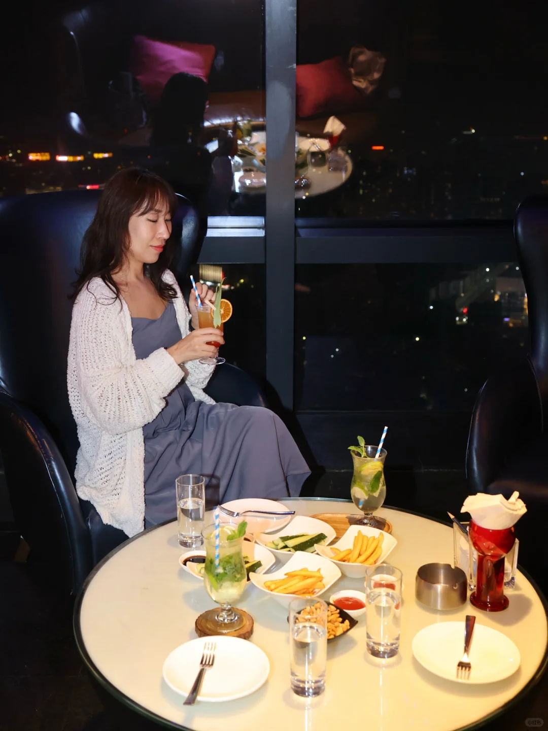 🔹到碧空餐吧小酌一杯鸡尾酒,俯瞰窗外夜幕降临后的城景,华灯初上氛围感拉满