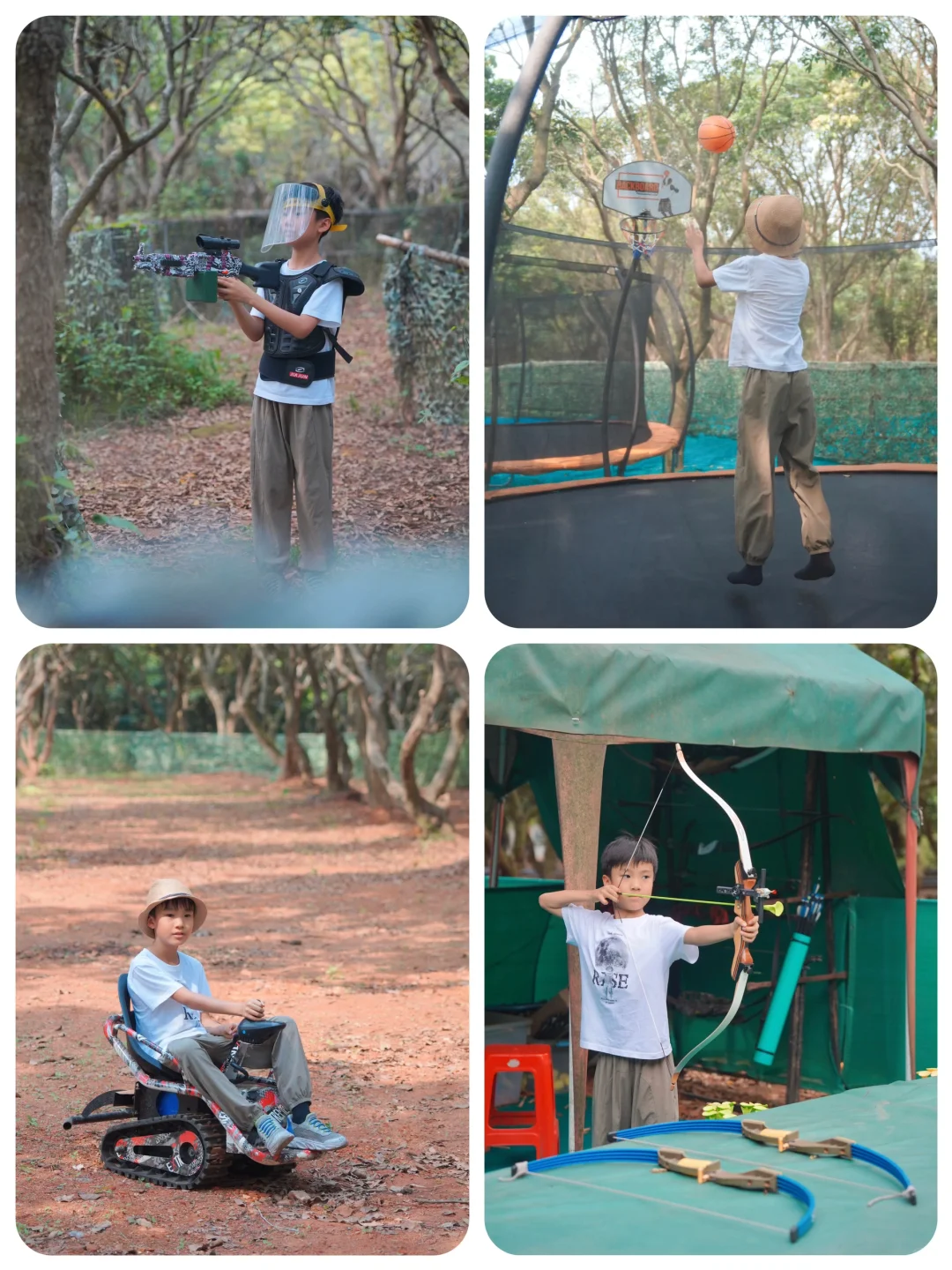 有卡丁车、射箭、滑草、蹦床、迷你铝带车、真人CS等等
