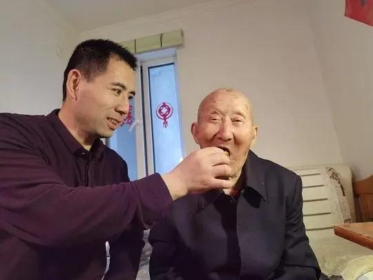 每当有空闲,他都会将年过九旬的养父董栋小接到身边,无微不至地照顾。