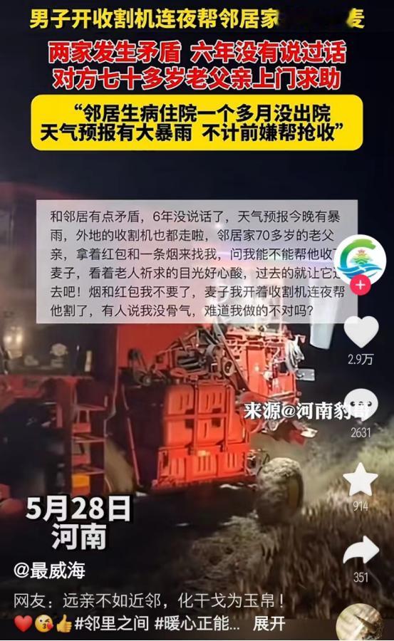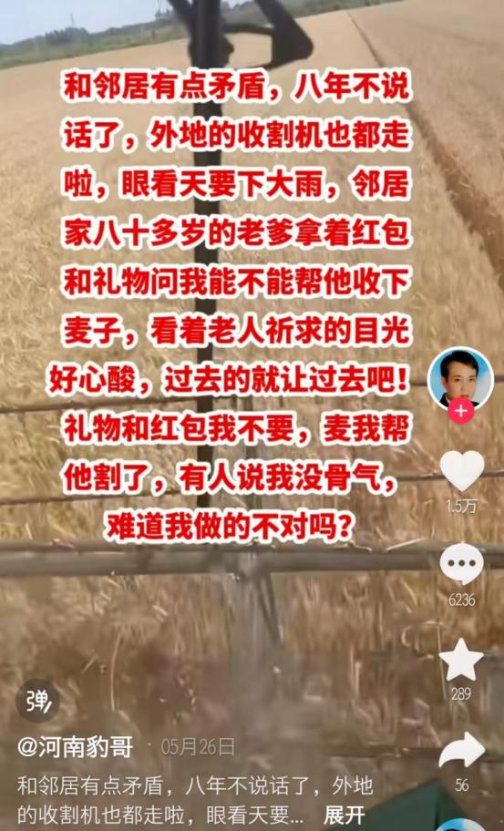 “这位大兄弟真了不起!”这位农民大兄弟跟邻居有矛盾,9年期间连话都不说一句,两家互不来往。这次邻居生病住院了,麦收季节都没回来,没想到接下来这位大兄弟的做法让人大吃一惊!