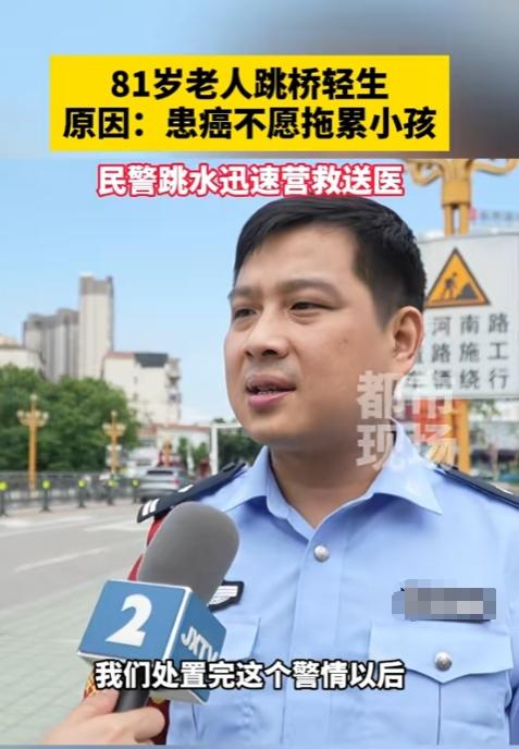 (信息来源:江西都市现场 2024-06-16 《81岁老人跳桥轻生。原因:患癌不愿拖累小孩。民警跳水迅速营救送医》)