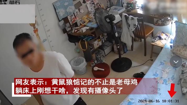 正当他意乱情迷之际,却突然发现了房间内的监控设备,男子吃了一惊,慌忙逃离了房间,这一切动静都被记录在了监控录像之中。