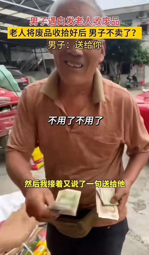 男子见状连忙上前拉住老爷爷坦言道“老人家您别介怀,那话是我开玩笑说的,这些废品我都送给您了。