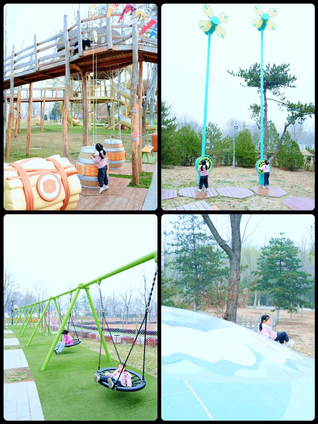 🌟律动森林:这里主要是攀爬、滑梯、沙坑、秋千、旋转椅,还有风能风车,都是体能方面的,旁边有秋千,家长可以休息一下,让孩子子玩就好了