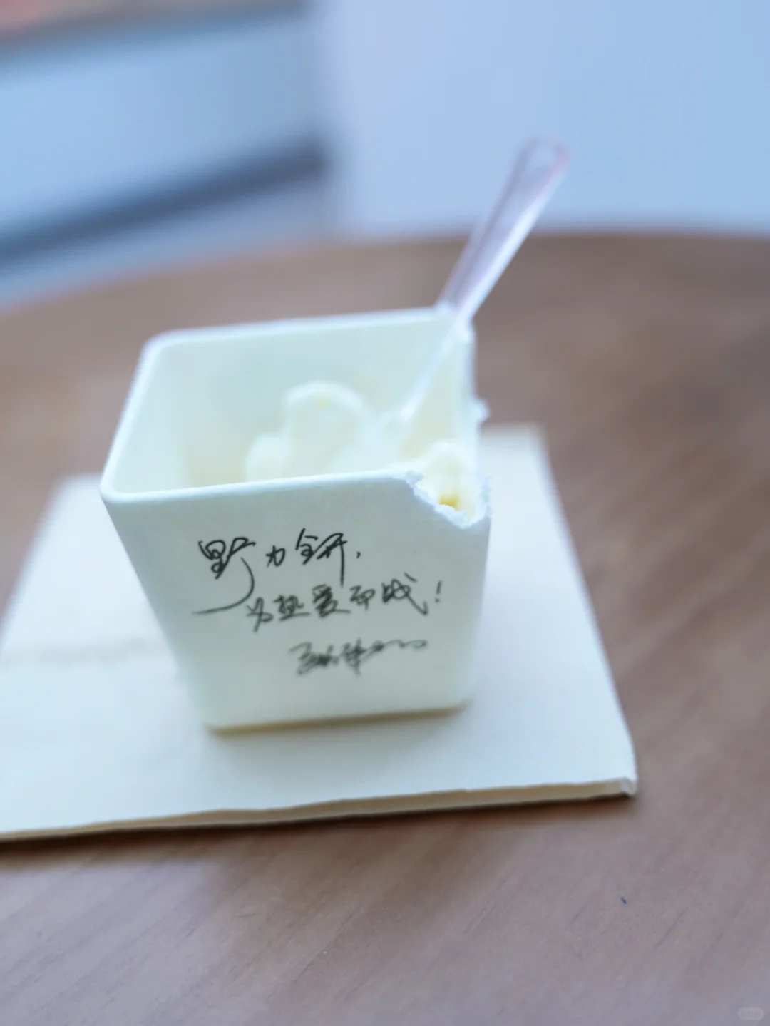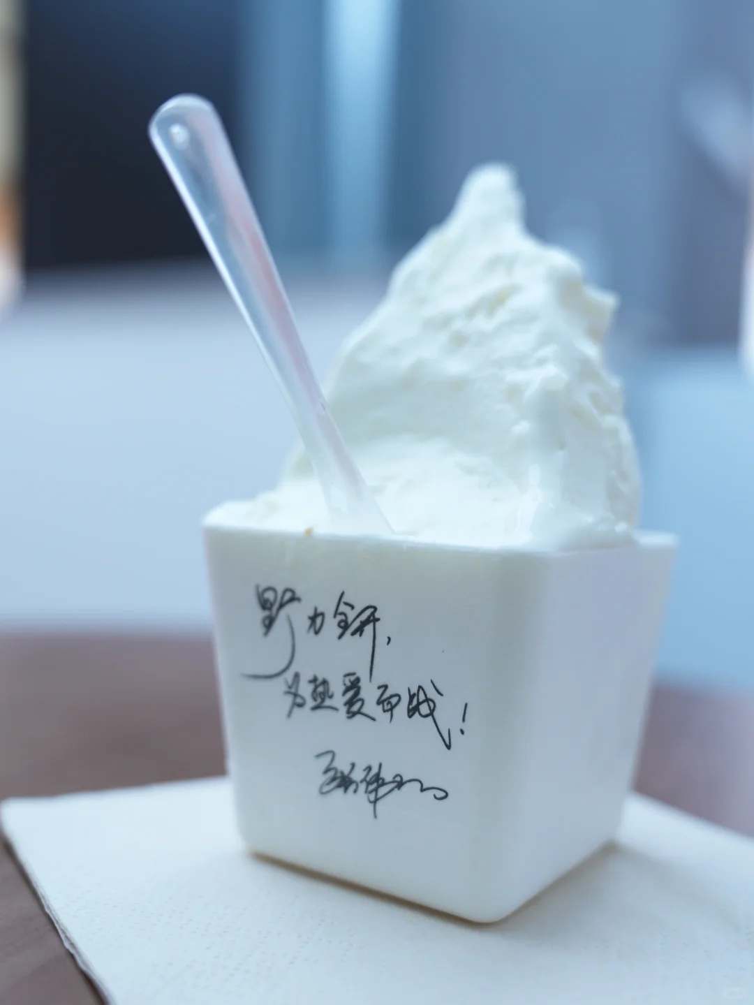 入口绵密,能够感受到大米的颗粒感,每一口都是那种纯粹的自然味道,奶香和米香的完美搭配 ,这里的冰淇淋不添加任何防腐剂和人工色素,真正健康又美味!有蛋筒和玉米杯两种包装,我选择的是玉米杯装,杯子是可以吃的哦,小方杯上面还有张伟丽的签名🥰