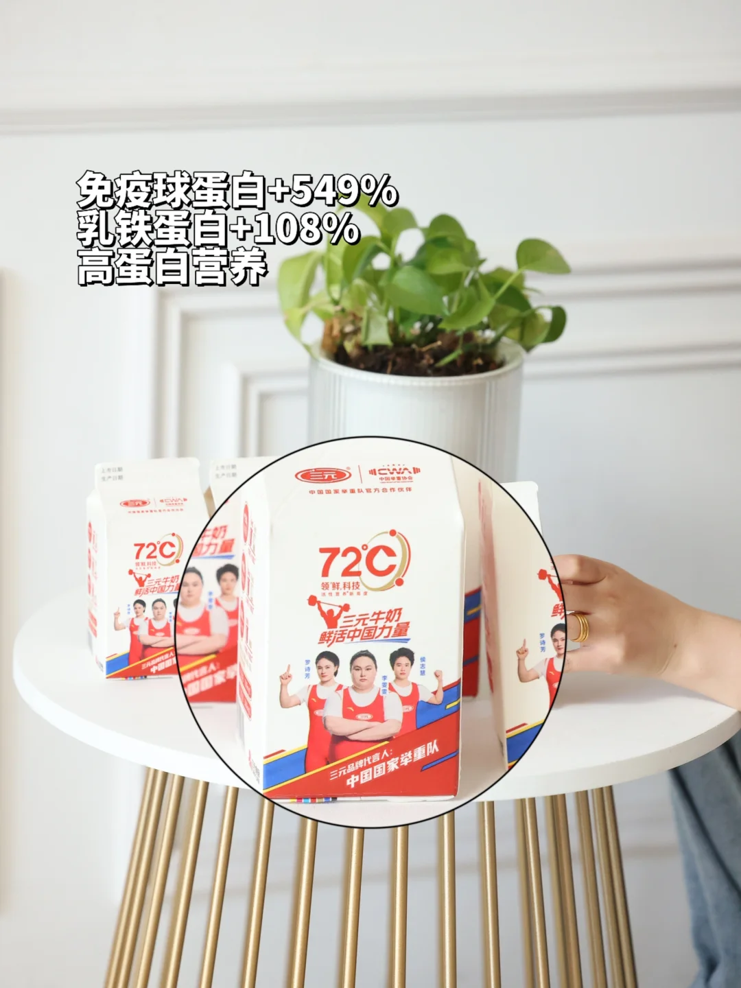 最近还出了中国国家举重队新包装,冠军品质,让全家人都能安心喝的营养好奶,选三元,准没错,另外参与【三元牛奶 鲜活力量】小程序玩游戏,有机会赢取巴黎旅游基金哦
