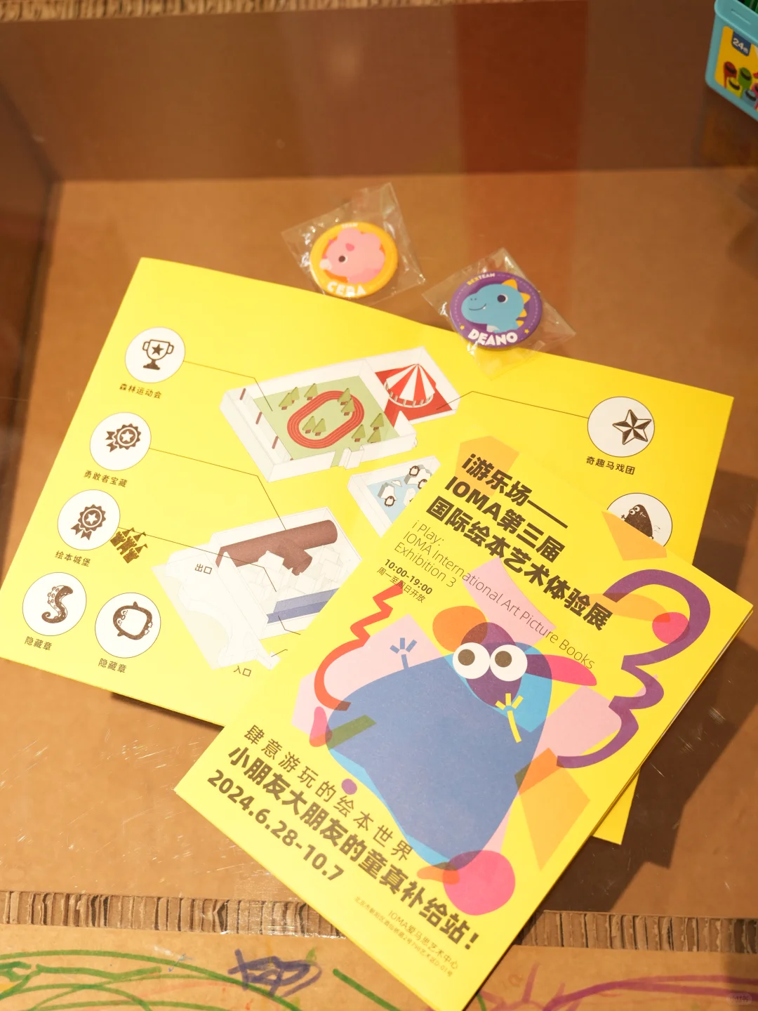 ❤️ 入馆后领取导览手册,里面有展区互动贴画页、涂鸦页、大富翁桌游页、手工页等。每个展区都可以打卡,集齐所有印章就能到前台兑换徽章