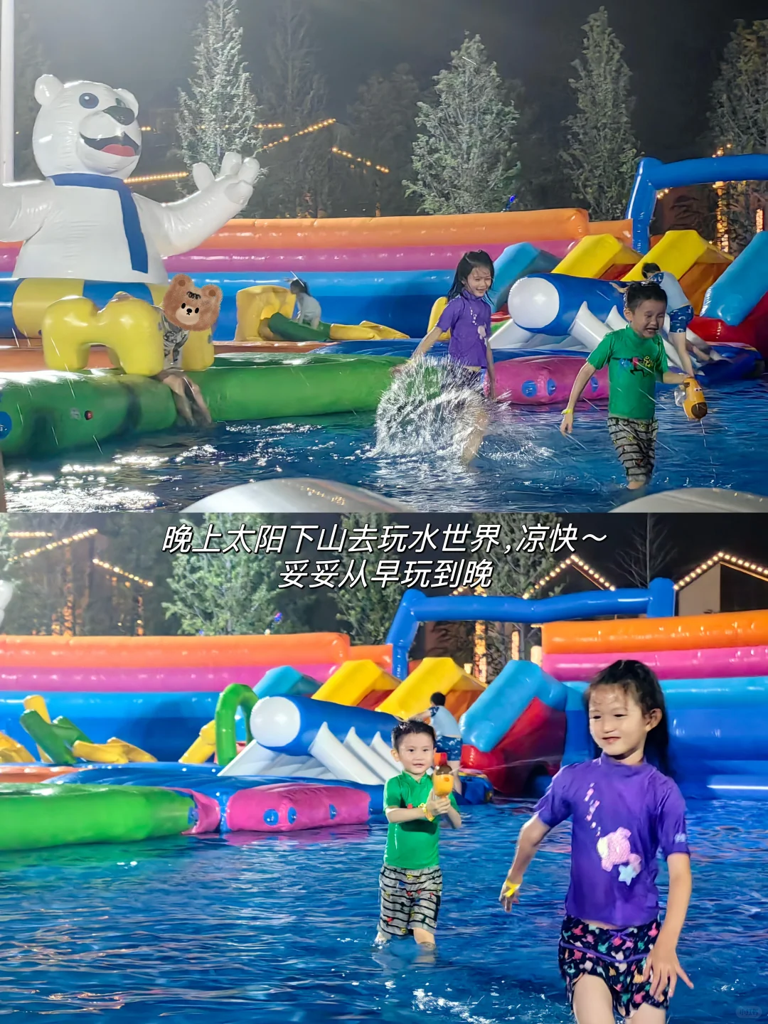 🌊晚饭吃好坐小火车去水上乐园,避开烈日凉快得很~小朋友水上滑梯滑了一圈又一圈。