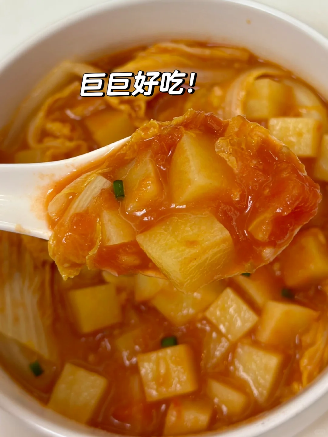 分享巨好吃的娃娃菜土豆番茄汤!巨巨好吃!汤汁浓郁!真的巨巨好吃!